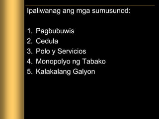MONOPOLYO NG TABAKO itinatag ito ni Jose Basco y Vargas noong ika- 1 ng Nobyembre 1782 Layunin. 26122012 Nang dumating ang mga dayuhang kastila sa bansang Pilipinas sinakop nila ito at pinilit nilang palitan ang Relihiyong Islam sa pamamagitan ng dulo. Ang wikang Tagalog at.