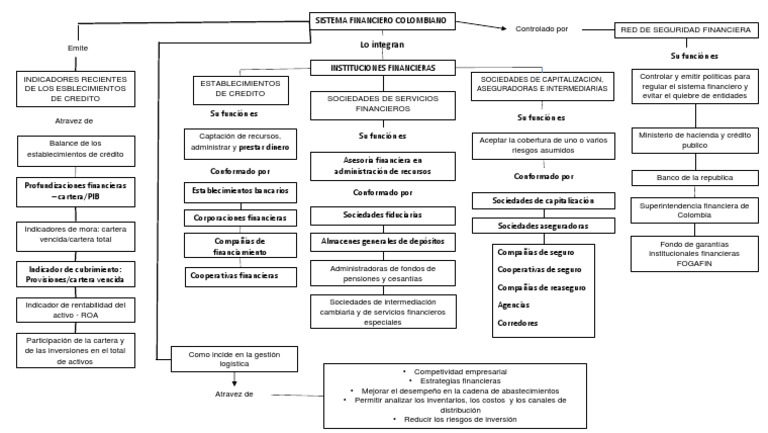 Este documento tiene como finalidad definir mediante un mapa conceptual los conocimientos adquiridos sobre el sistema financiero en Colombia y su aplicación en este proyecto de gestión logística. Esta red es un conjunto de normas procedimientos mecanismos e instituciones que tienen el propósito de preservar la estabilidad del sistema financiero. Incidencia del sistema financiero en la gestión logística.